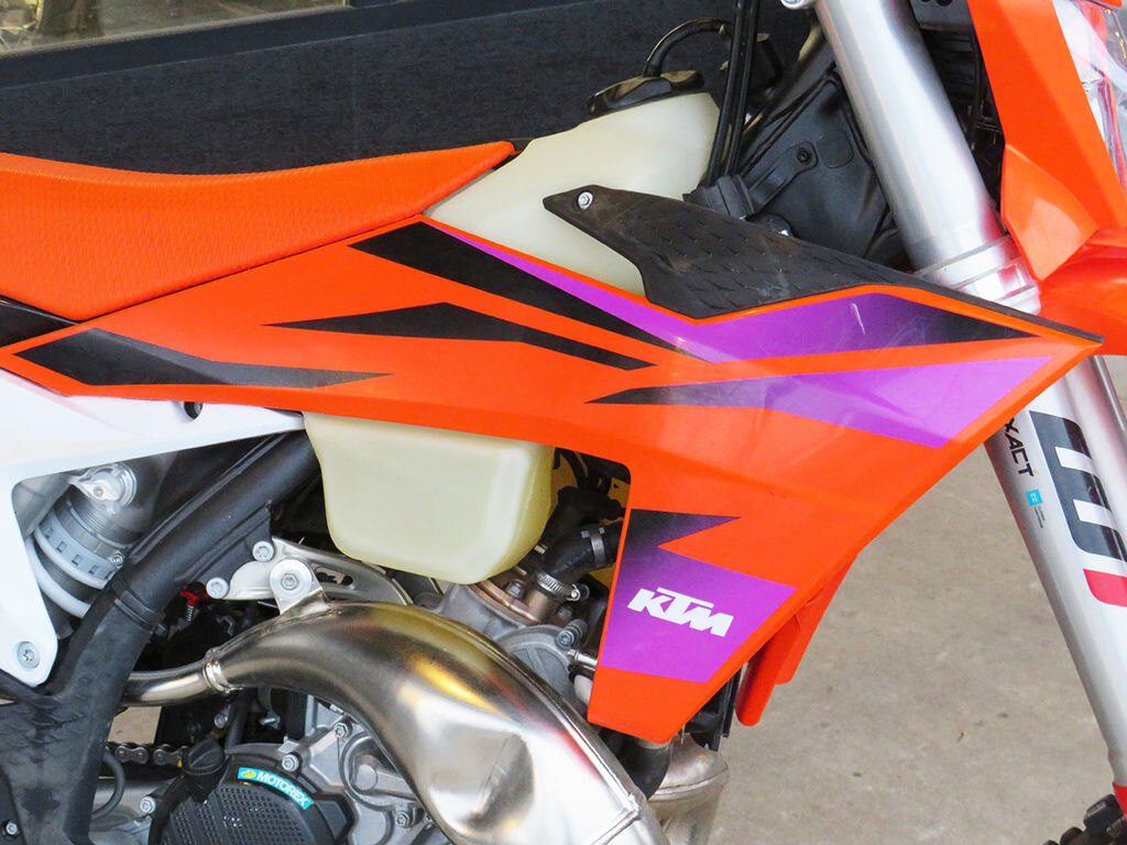 FUELING SPEEDForget TPI, the 2024 KTM 2-stroke Enduro models feature all-new electronically-controlled Throttle Body Injection - or TBI. The ECU, together with a new Keihin 39mm throttle body, calculates the ideal air-fuel mixture by constantly analyzing water temperature, air temperature, ambient pressure, and pressure within the crankcase, the rpm, and the throttle position to ensure the smoothest and most consistent power delivery in the most gnarly of enduro conditions.