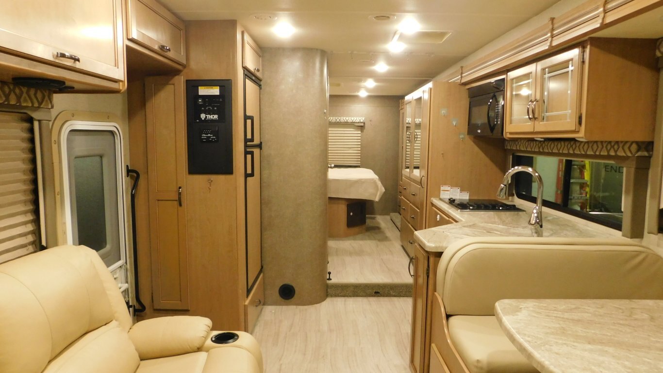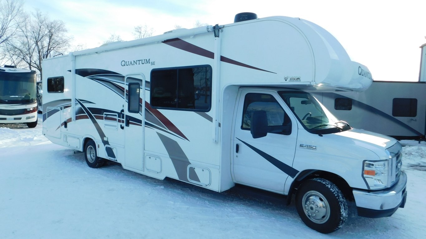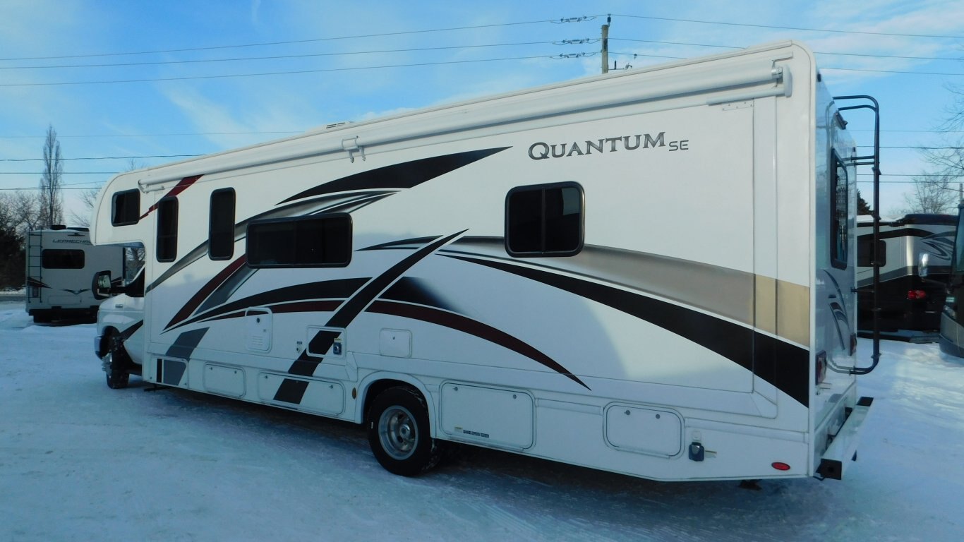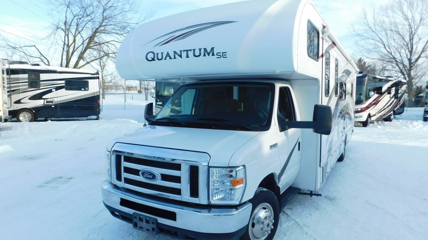 This 2020 Thor Quantum SE31 shows extremely well inside and out and has only 19,500 kms . It has 1 full wall slide which offers lots of open floor space. It is equipped with the following options: -CHASSIS: Ford F53 -ENGINE: V10 6.8 litre -TRANSMISSION: 6 Speed Automatic torq shift transmission -FUEL CAPACITY:(gal) 55 -HITCH RATING:(lbs) 8,000 -Tires DOT 49/20 -PROPANE TANK:(gal) 9.7 -GENERATOR: ONAN 4000 - Length - 32ft. - Width - 8 ft. - Height - 12.00 ft. - Roof Ladder - Outdoor Entertainment - Power Levelling Jacks - 18 ft. Power Retractable Awning - 15,000 BTU Roof Air Conditioner - 30,000 BTU Furnace - Plenty of Basement Storage - Rear View Camera - Bunk Over Cab - Convertible Dinette - Convertible Sofa - Mid Size Dual Refrigerator - 3 Burner Stove w/ Oven - Microwave - Bright Shower w/ Skylight - Queen Size Bed in Master - Full Wardrobe - etc. -COME BY AND SEE IT TODAY!!