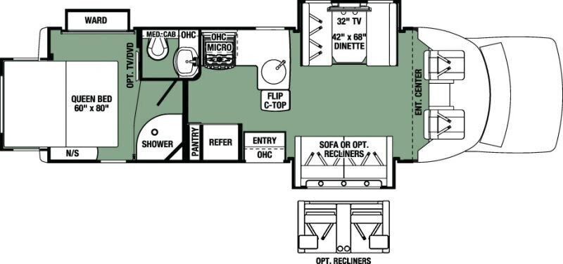 This 2019 Forest River Forester 2801QS is very clean with a very clean interior and a nice open layout. It has 4 slides which offers lots of floor space. It is equipped with the following options: -CHASSIS: Ford E450 -ENGINE: V10 6.8 litre -TRANSMISSION: 5 Speed Automatic torq shift transmission -FUEL CAPACITY:(gal) 40 -HITCH RATING:(lbs) 5000 -Tires DOT 49/20 -PROPANE TANK:(gal) 9.7 -GENERATOR: ONAN 4000 - Length - 30ft. - Width - 8 ft. - Height - 12.00 ft. - Roof Ladder - Outdoor Kitchen - Outdoor Entertainment - Power Levelling Jacks - 18 ft. Power Retractable Awning - 13,500 BTU Roof Air Conditioner - 20,000 BTU Furnace - Plenty of Basement Storage - Rear View Camera - Bunk Over Cab - Convertible Dinette - Convertible Sofa - Mid Size Dual Refrigerator - 3 Burner Stove w/ Oven - Microwave - Bright Shower w/ Skylight - Queen Size Bed in Master - Full Wardrobe - etc. -COME BY AND SEE IT TODAY!