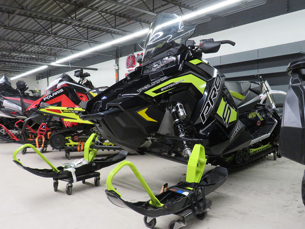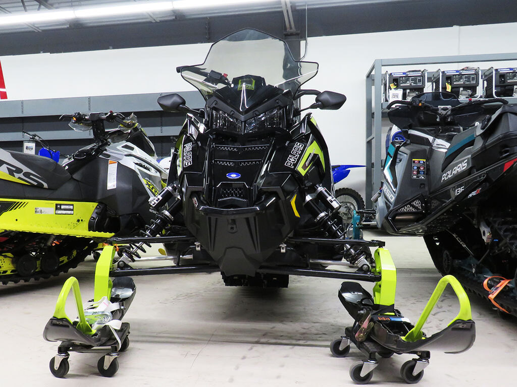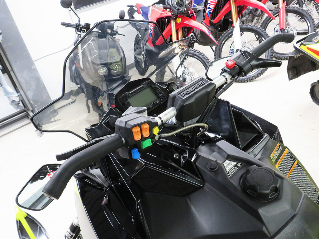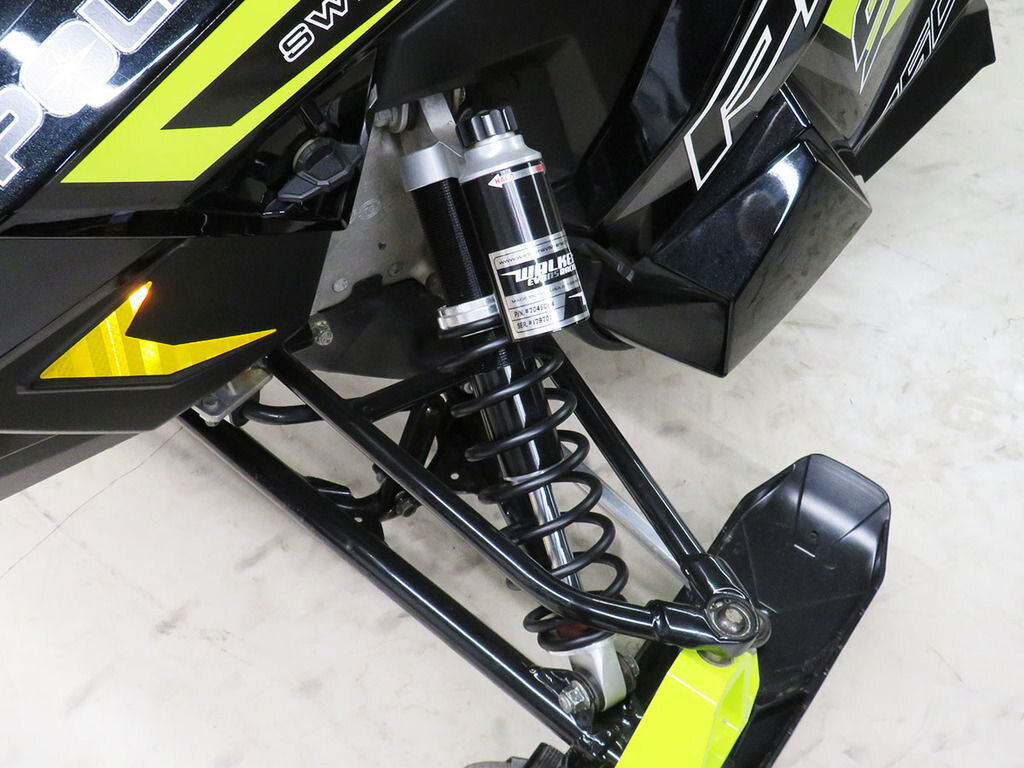 This 850 Switchback PRO-S has been very well cared for and has the following Snowcheck Select factory-added accessories: Black tunnel, electric start, Black Pearl / Lime Squeeze colour choice, lime rails, and Walker Evans Needle Clicker shocks. A taller windshield rounds out these desirable features, making it a great package for a day or three of trail-riding!