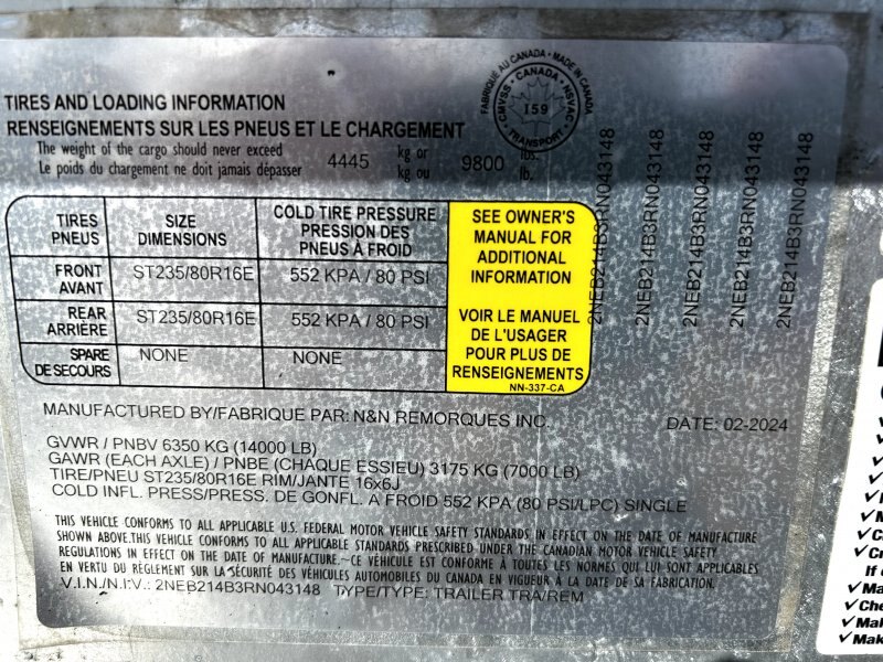 2024 N&N Dump Trailer HD82/168 Galvanized G-003, 14K 16R Tires