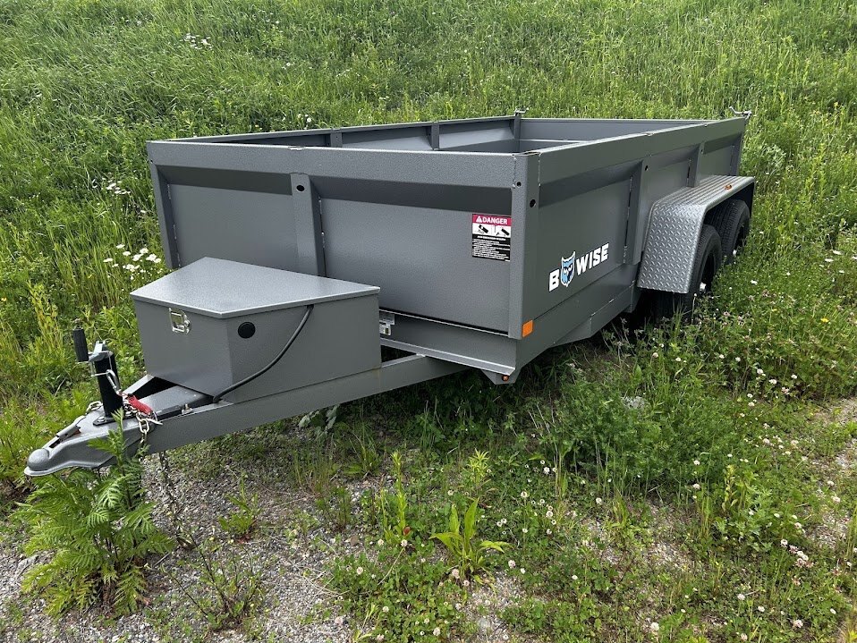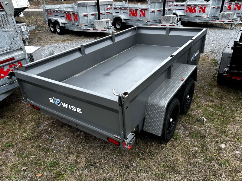 2024 BWise DT612LP-LE-10-D Dump Low Pro, 72" Wx12' L 9,999 GVWR, 6" Channel Main Frame, Formed Bed Sides, 2-5/16" A- Frame Coupler, 5K TOP Wind Jack, One Piece, Tail gate Only 6K, II Tandem Axle, Elec ST225/75R15D Radl Black mod Deep Cycle Battery, 4" Single Acting Cylinder