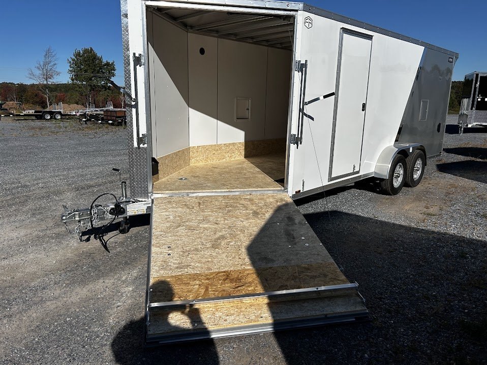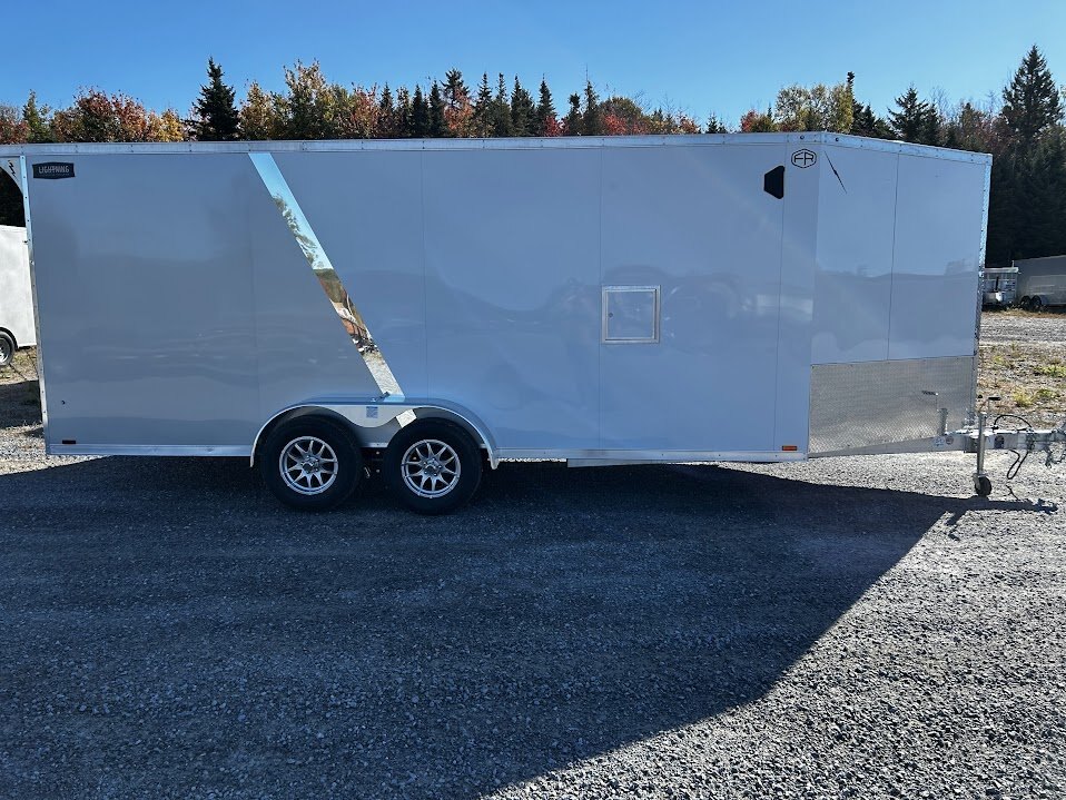 Lightning Enclosed Snowmobile Trailers are available in various sizes to accommodate between 2 and 4 snowmobiles at a time. They are available in both a 7’ wide “in-line” and the 8.5’ wide “deck-over” models. All models feature front and rear ramp doors for true “drive in-drive out” use. Our available Radar package includes many of our most popular options. Aluminum rims, white vinyl interior walls and fuel doors are just some of the features of the Radar Package.
