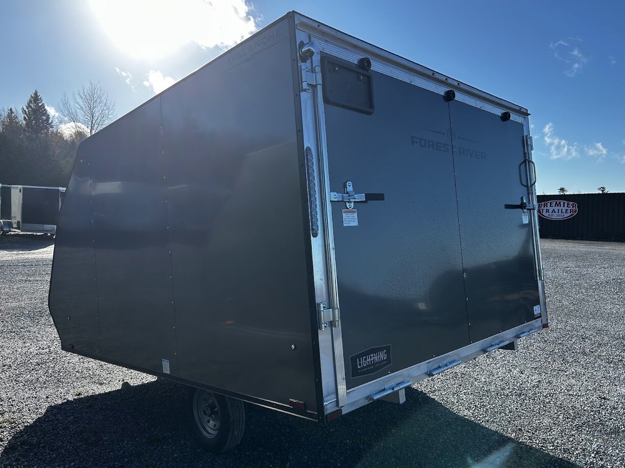 A two snowmobile trailer by design, Lightning Avalanche models will meet your needs during all four seasons. Available in both 11’ and 13’ models and single and tandem axle configurations, we have models that accommodate various sized snowmobiles. The Avalanche gives the look and value of its predecessor, the “tilt trailer with clamshell cover,” while giving you the ease of use and durability of an enclosed trailer.