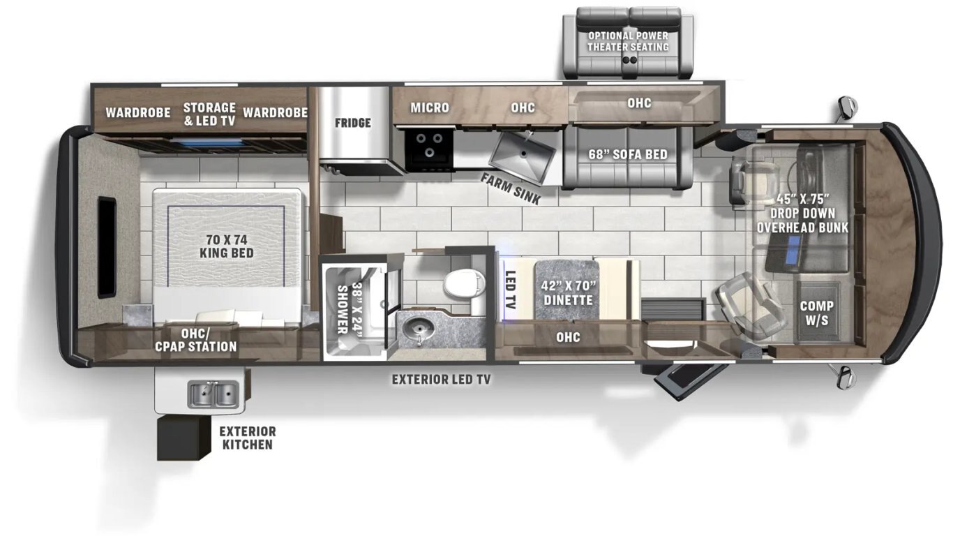 The Mirada comes with a suite of standard features that offer better comfort and more style than ever before. These new features are designed with you and your passengers in mind, so you’ll find the interior feels less like a vehicle and more like a home. Relaxing, comfortable, and spacious, the Mirada offers a sense of stability and sanctuary while you’re out on the road.