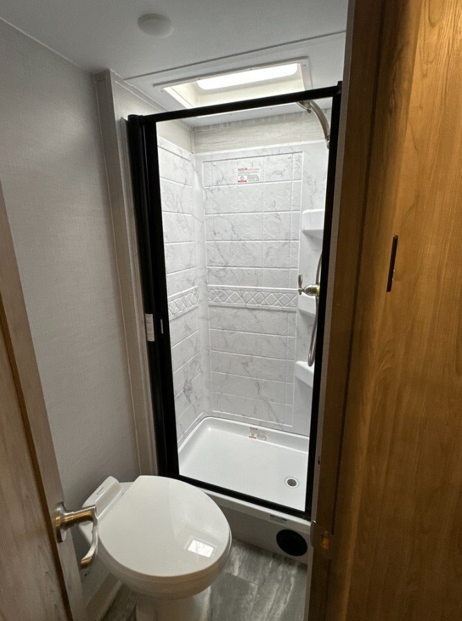 Spacious Shower, Vanity & Toilet Travel without sacrificing convenience