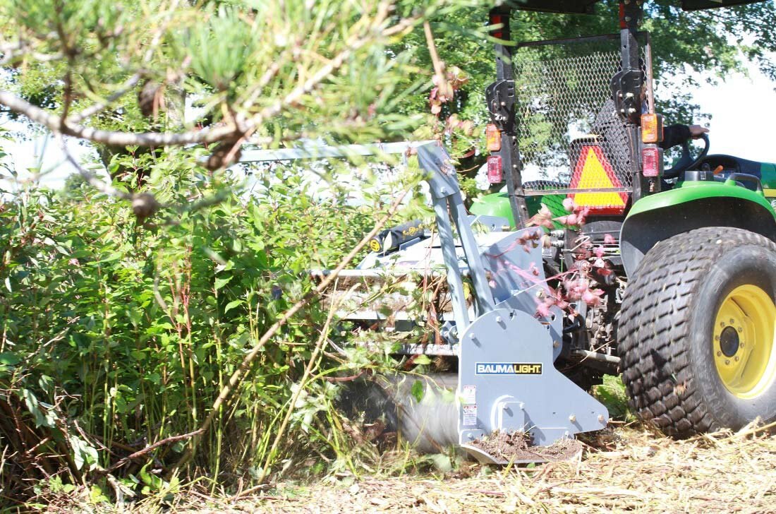 Our 500 series fixed tooth masticating head brush mulchers for 3-point hitch tractors are designed to maintain and clear fence lines on farms and entry level contractor work. The 500 series Baumalight brush mulchers will efficiently mulch heavy brush and small trees and are offered with two different types of teeth. The Planer style teeth take small bites and provide the most efficient mulching and cutting. The Ripper style teeth have more of a shredding mulching action. Their v-shaped design makes them less susceptible to impacts with hard objects like stones, making them the better choice when mulching below grade and in fence lines.