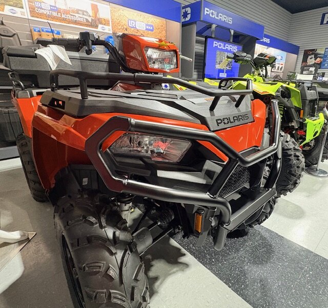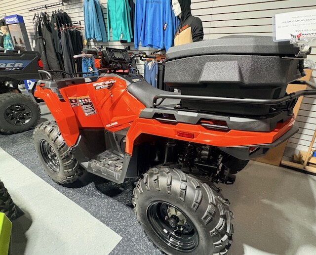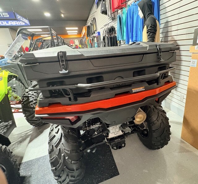 Rear Box Extra Engine Type: Single-Cylinder Displacement: 34.6 cu. in. (567 cc) Bore x Stroke: Bore: 3.9 in. (99 mm); Stroke: 2.9 in. (73.6 mm) Cylinders: 1 Engine Cooling: Liquid Fuel System: Gas Starting System: Electric Front Suspension: McPherson Strut Front Travel: 8.2 in. (208 mm) Front Brake Type: Hydraulic Disc Front Tires: 25 x 8-12 P373 Rear Suspension: Independent Double A-Arm Rear Travel: 9.5 in. (241 mm) Rear Brake Type: Hydraulic Disc Rear Tires: 25 x 10-12 P373 Frame: Steel Dry Weight: 768 lb. (348 kg.) Towing Capacity: 1350 lb. (612 kg.) Fuel Capacity: 4.5 gal. (17 L) Ground Clearance: 11.5 in. (290 mm) Machine Dimensions (LxWxH): L: 83 in. (2108 mm); W: 48 in. (1219 mm); H: 47 in. (1194 mm) Wheelbase: 50.5 in. (1283 mm) Drive Train: Continuously Variable (CVT) Speedometer: Standard Tachometer: Standard Odometer: Standard