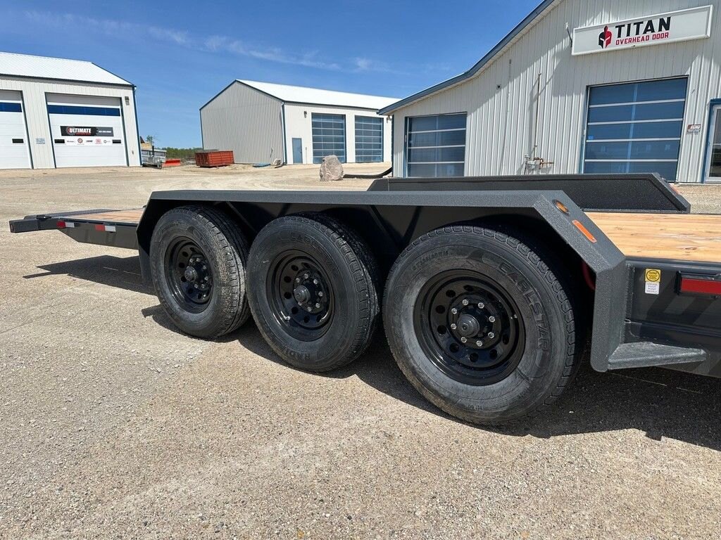 The Precision Trailers Heavy Duty Tilting Deck offers models of various sizes from the partial 60/40, to the full tilting deck running either electric over hydraulic power packs, or a free flowing valve controlled cylinder. The tilting deck series provides the same high quality tubular steel frame and 3\" 16 O/C and high tensile i-beam crossmembers for increased strength and durability. This trailer, like all Precision trailers, uses Voltflex wiring entirely sealed off inside the tubular frame. The trailer has Dexter\'s more durable torsion axles, Carlisle wheels and radial 10 ply tires are specifically selected for each model. Offering a one-side locking and unlocking system, the tilting deck allows for smooth transition from the ground to the deck for those hard to load items. This trailer is a must for any construction worker.