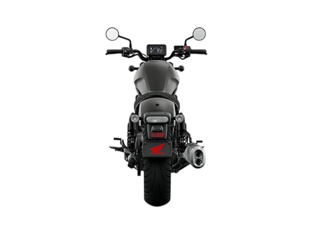Chassis & SuspensionThe Rebel’s 43 mm cartridge-type front fork is coated in a dark titanium oxide that complements the bike’s evocative blacked-out styling. Classic “piggyback” style twin rear shocks not only look the business, they also ensure consistent damping force for a controlled, comfortable ride over all types of road surfaces. Spring preload adjustment lets you calibrate suspension performance to your personal preference, or to take into account a passenger or the added weight of luggage.